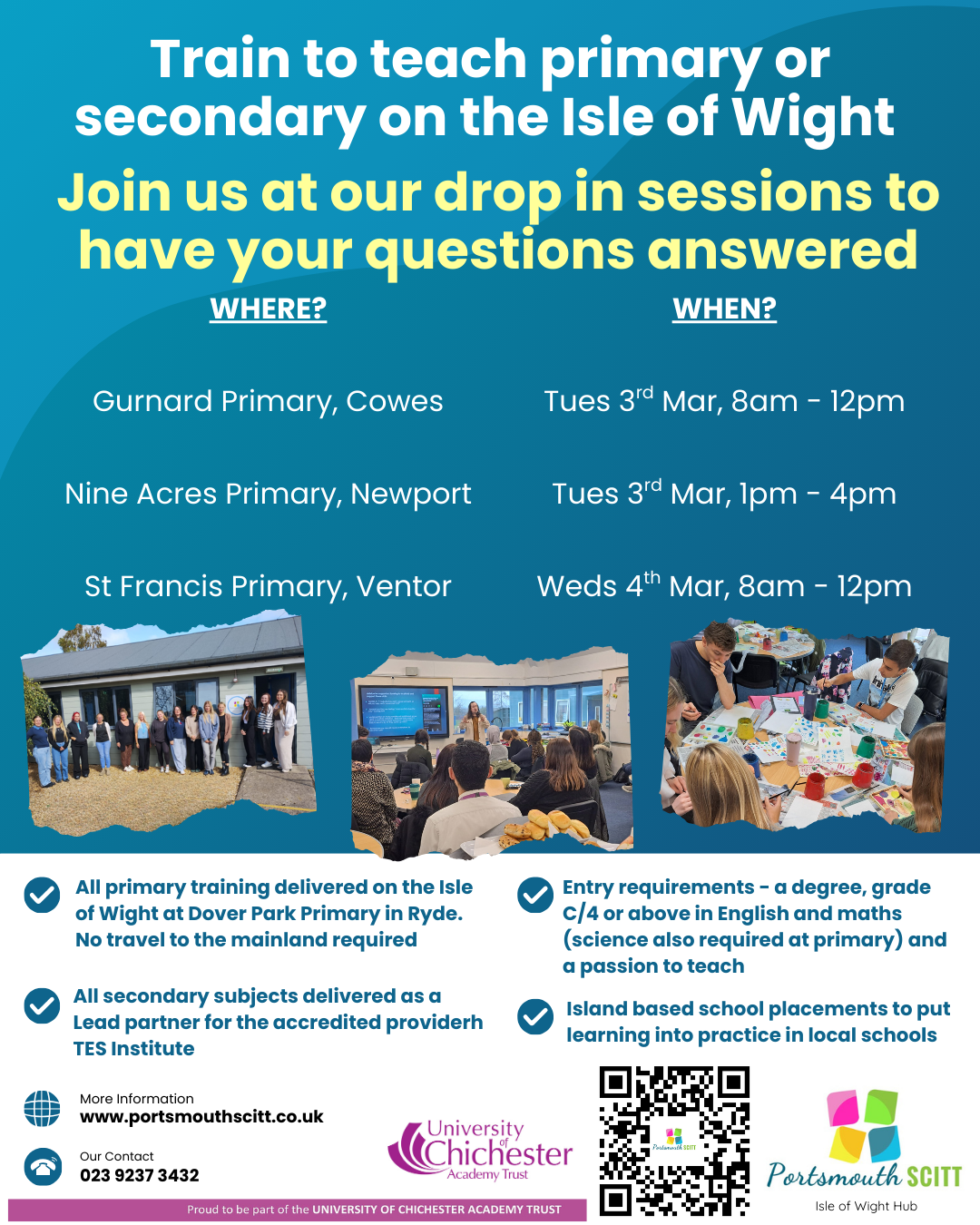 Are you Isle of Wight based and want to find out more about our courses? Come along to one of our drop in sessions, held at partner schools across the Island.
